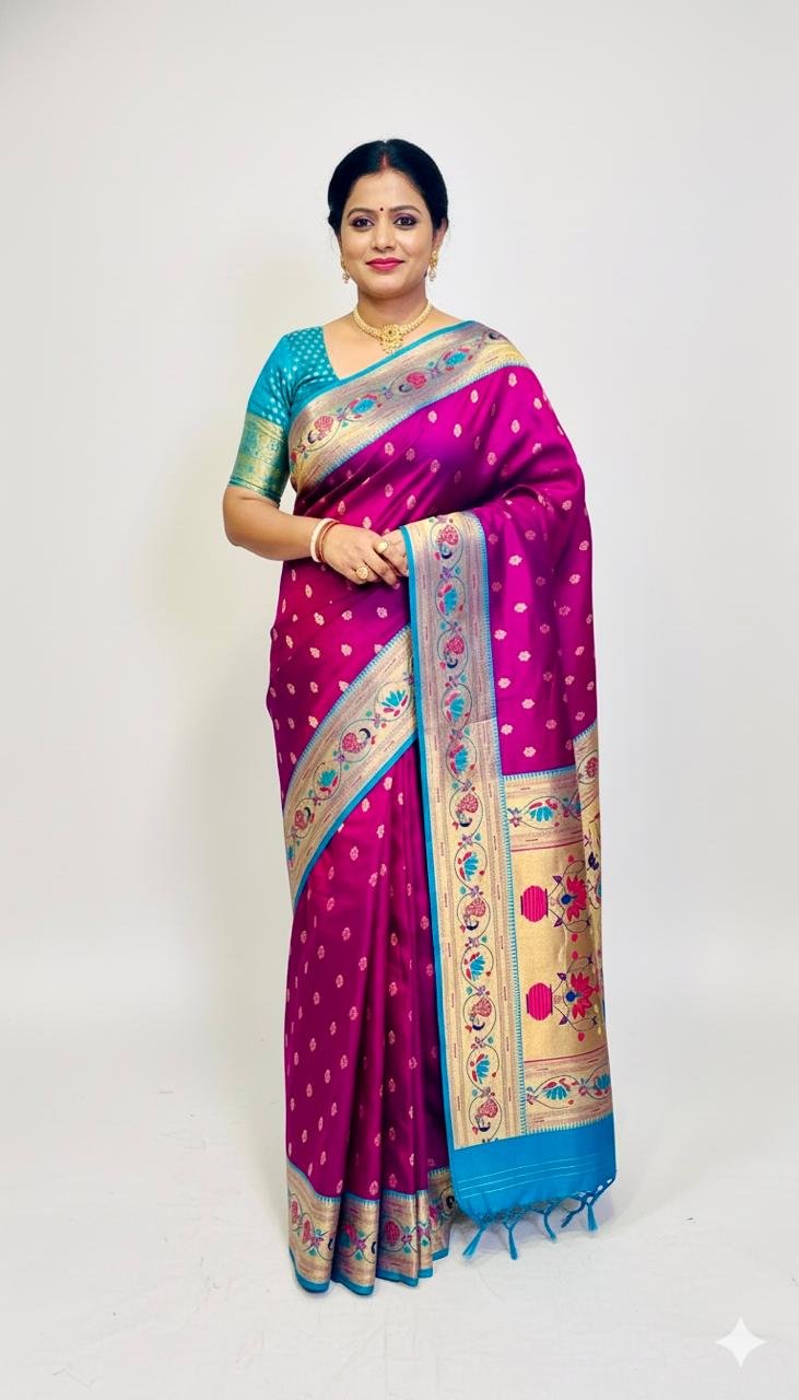 Sumis Fashion Silk Sarees Women’s Paithani Soft Silk Saree With Blouse Piece (purple)